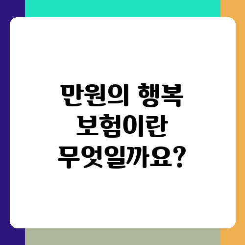 만원으로 든든한 보장을 받을 수 있다면 얼마나 좋을까요? 요즘처럼 경제적으로 어려운 시기에 작은 금액으로 큰 보장을 받을 수 있는 만원의 행복 보험에 관심이 많으시죠? 하지만 어떤 보험인지, 가입 조건은 어떻게 되는지, 정확히 어떤 상해를 보장하는지 궁금하신 분들이 많을 거라고 생각합니다. 오늘은 만원의 행복 보험에 대해 자세히 알아보고, 똑똑하게 가입하는 방법까지 알려드릴게요. 가입 전 꼭 확인해야 할 사항들도 꼼꼼하게 살펴볼 테니, 끝까지 집중해서 읽어보세요!
