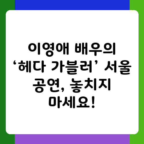 이영애 배우의 연극 무대 복귀 소식에 많은 분들이 기대감을 갖고 계실 거라고 생각합니다. 오랜만에 무대에 서는 이영애 배우의 연극 ‘헤다 가블러’ 서울 공연, 정말 기대되지 않으세요? 저도 너무 보고 싶어서 공연 정보를 찾아보고 예매 팁까지 정리해봤습니다. 이 글을 통해 이영애 배우의 ‘헤다 가블러’ 공연을 놓치지 않도록 꼼꼼하게 준비하실 수 있도록 도와드리겠습니다.