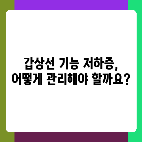 갑상선 기능 저하증, 어떻게 관리해야 할까요?