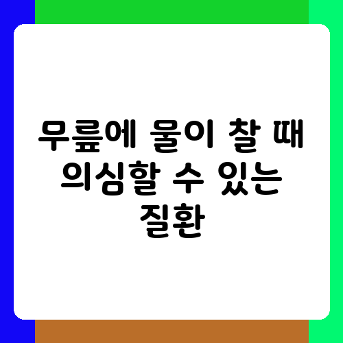 무릎에 물이 차는 증상, 흔히 경험하는 통증 중 하나입니다. 가볍게 생각하고 넘기기 쉽지만, 사실 무릎에 물이 차는 것은 다양한 질환의 신호일 수 있어요. 단순한 부상부터 심각한 질병까지, 그 원인을 정확히 파악하는 것이 중요합니다. 이 글에서는 무릎에 물이 찰 때 의심할 수 있는 질환들을 알아보고, 증상과 치료법에 대해 자세히 설명해 드릴게요. 무릎 통증으로 고민이신 분들에게 도움이 되길 바랍니다.
