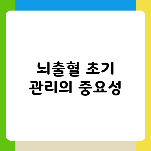 뇌출혈 직후의 초기 관리가 회복에 큰 영향을 미칩니다. 응급 치료 후에는 혈압과 뇌압 관리가 중요하며, 의료진의 지시를 따라 꼼꼼하게 약을 복용하는 것이 필수적입니다. 또한, 뇌의 부종을 줄이기 위한 약물 치료와 수술이 필요할 수도 있습니다. 가족 구성원의 적극적인 관심과 지지 또한 환자의 빠른 회복에 큰 도움이 됩니다. 초기 단계에서 얼마나 잘 관리하느냐에 따라 향후 재활의 효과와 기간이 달라질 수 있으니, 의료진과의 긴밀한 소통이 매우 중요합니다. 예를 들어, 혈압 변화에 민감하게 반응하고, 의사의 처방대로 약물을 꾸준히 복용하며, 정기적인 검진을 통해 상태를 체크하는 것이 필요합니다. 혹시라도 의문점이 생기면 언제든 의료진에게 질문하고, 함께 해결책을 찾아나가는 적극적인 자세가 중요하다고 생각합니다. 초기 관리에 대한 충분한 정보를 얻고, 가족과 주변 사람들과 함께 긍정적인 마음으로 대처한다면 힘든 시간을 잘 극복할 수 있을 거예요.