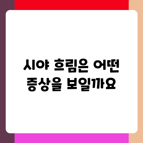 고혈압으로 인한 시야 흐림은 갑자기 발생할 수도 있고 서서히 진행될 수도 있습니다. 흐릿하게 보이거나, 시야 일부가 가려지는 듯한 느낌이 들 수도 있고요. 심한 경우에는 시야가 뿌옇게 보이거나, 물체가 겹쳐 보이는 등의 증상이 나타날 수도 있습니다. 이러한 시야 흐림은 뇌혈관의 문제와 관련이 있을 수 있으므로, 절대 가볍게 여겨서는 안 됩니다. 제 친구의 경우, 시야 흐림 증상을 오랫동안 방치하다가 결국 뇌졸중으로 이어진 경우를 보았습니다. 작은 증상이라도 놓치지 말고, 바로 병원에 가는 것이 중요해요. 초기에 발견하면 치료가 훨씬 수월하다는 점을 꼭 기억하세요.