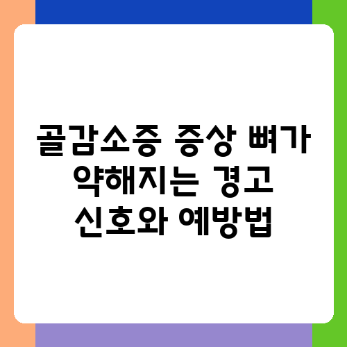 뼈가 점점 약해지는 느낌, 혹시 경험하고 계신가요? 나이가 들면서 자연스러운 현상이라고 생각하시는 분들도 많지만, 골감소증은 방치하면 골다공증으로 이어져 심각한 결과를 초래할 수 있습니다. 하지만 미리 알고 예방한다면 충분히 늦추거나 예방할 수 있어요. 오늘은 골감소증의 증상과 예방법에 대해 자세히 알아보고, 건강한 뼈를 유지하는 방법을 함께 찾아보도록 하겠습니다. 건강한 삶을 위한 첫걸음을 함께 해요.